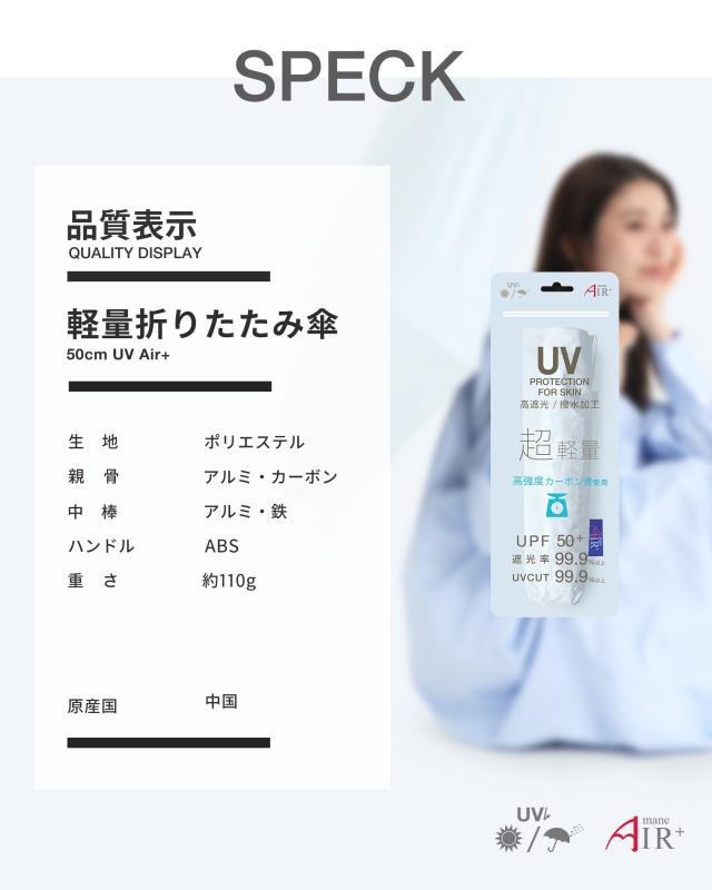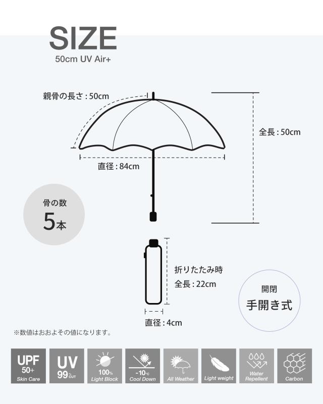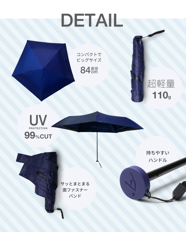 日傘 晴雨兼 超軽量&スリム 110g 折りたたみ傘 選べる5色 遮光率98% UV遮蔽率99% ネイチャーカラー グレー ネイビー サックス ブラック UVカット 上品 50cm