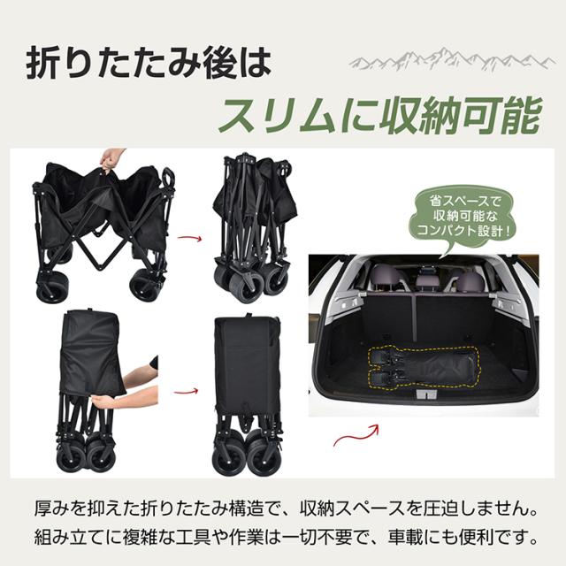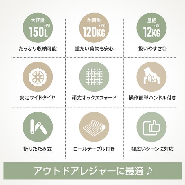 camping キャリーワゴン アウトドアワゴン 折りたたみ式 大容量150L 耐荷重120kg 大型タイヤ ワイドタイヤ キャリーカート ストッパー付き ロールテーブル 運搬 テーブル 折り畳み 高耐久 大型 軽量 キャンプ イベント 頑丈 おしゃれ od658