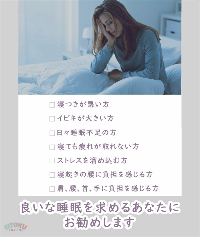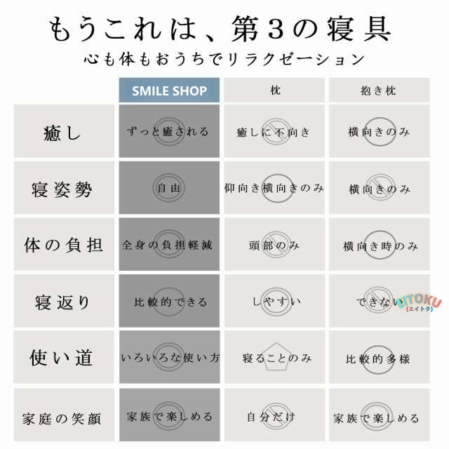 - 以前自分用に購入し、家族が欲しそうにしていたので再購入しました。夜もぐっすり眠れているようで、これに慣れたら外泊先で寝付けないかもと言うくらい、喜んでいるようでよかったです。