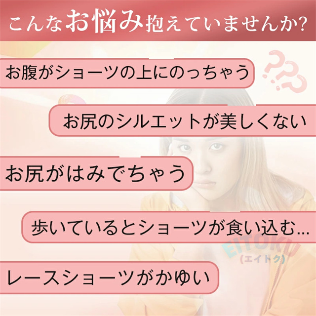 【美尻&骨盤ケア】立体的にお尻を包み込む3D本感のある桃ヒツブラインをメイク。美尻効果で後ろ姿スッキリ!体の贅肉や緩んだ部分を通度に補正し、お腹周りやお尻をサボ一トします。