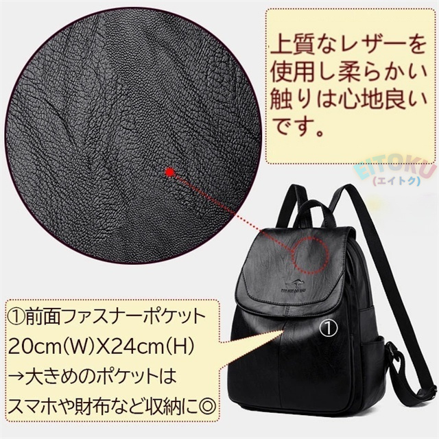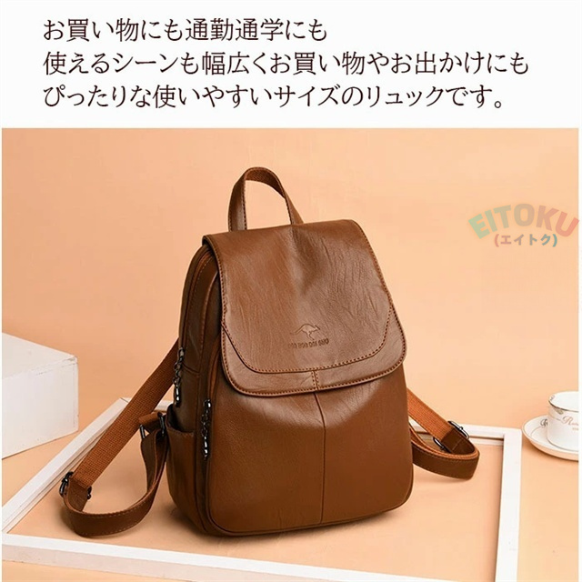 - 以前からレザーのリュックが欲しくて探してました。使い勝手が良さそうで 派手な感じでも無く 思わず買ったのですが 予想を裏切らないクォリティでした。手頃な値段で大満足な商品でした。