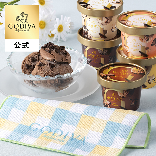 アイス スイーツ ギフト ゴディバ (GODIVA)【オンラインショップ限定・送料込】カップアイスクリーム 90ml(5個入)+ オリジナルハンドタオルセット