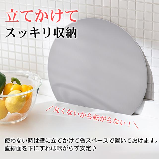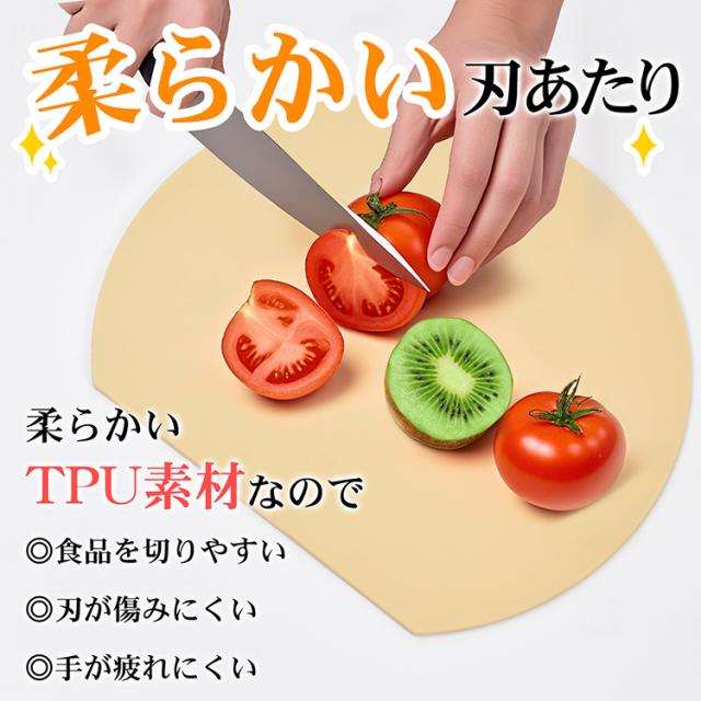 新生活 D型まな板 ソフトまな板 カッティングボード 食洗機対応 耐熱 TPU 両面 丸型 D型 半円 多機能 熱湯消毒 薄型 台所 キッチン 自立 収納 ブラック ベージュ グレー おすすめ 水切れ 両面 刃当たり 肉 魚 in044-m