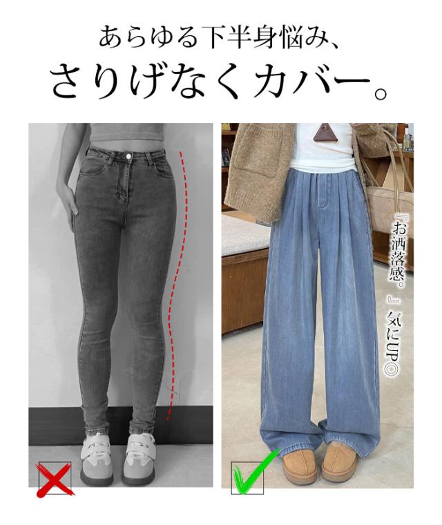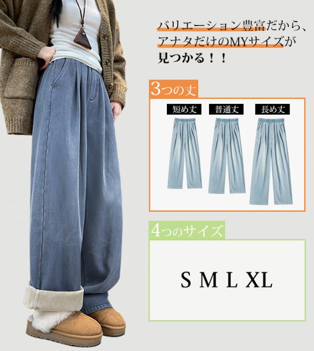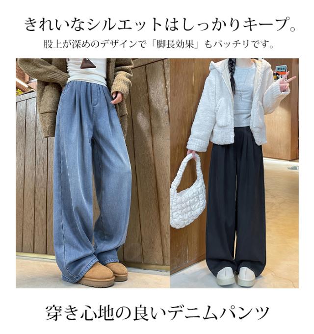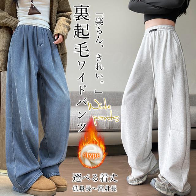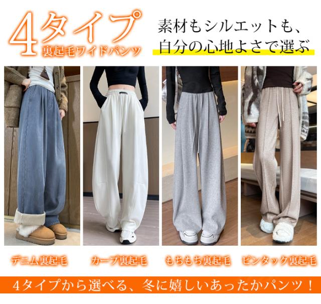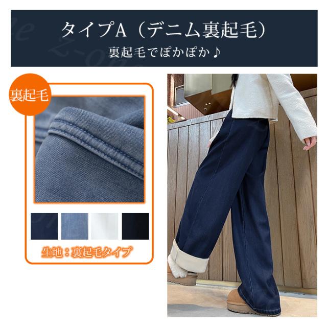 裏起毛ワイドパンツ 選べる4type 暖かい あったか 保温 ワイドデニム デニムパンツ 秋新作 秋冬 送料無料 ウエストゴム レディース ボトムス カシュアル 体型カバー ゆったり ハイウエスト ジーンズ 美脚 クリスマスプレゼント
