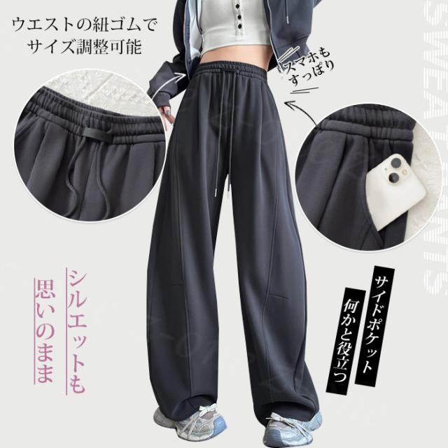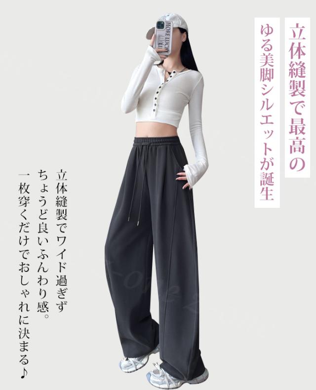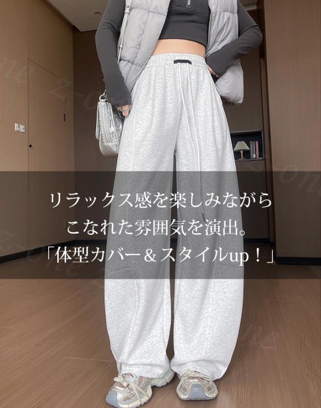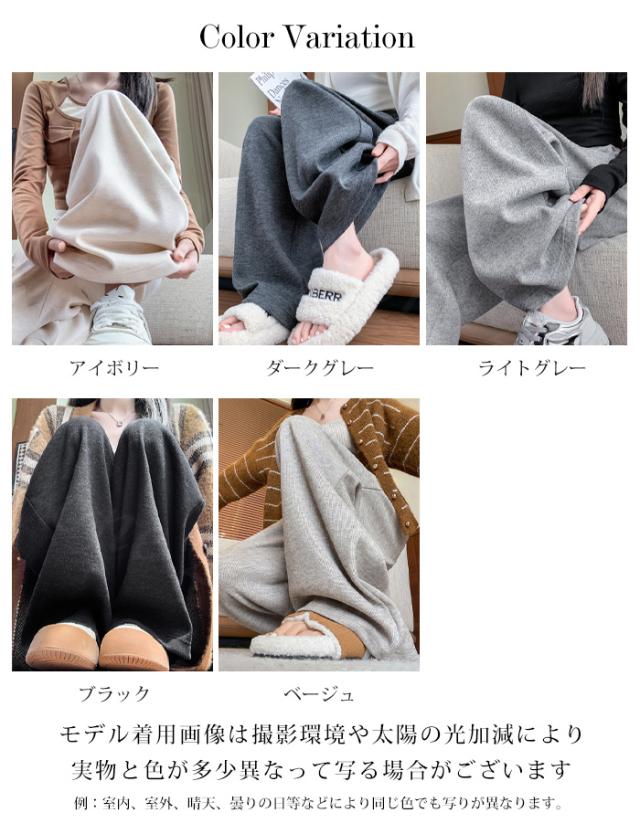 - ワイドパンツだけどウエストがタックになっているので、思ったより見た目もスッキリして良いです。裏起毛もしっかりしているので、これから沢山はこうと思います。