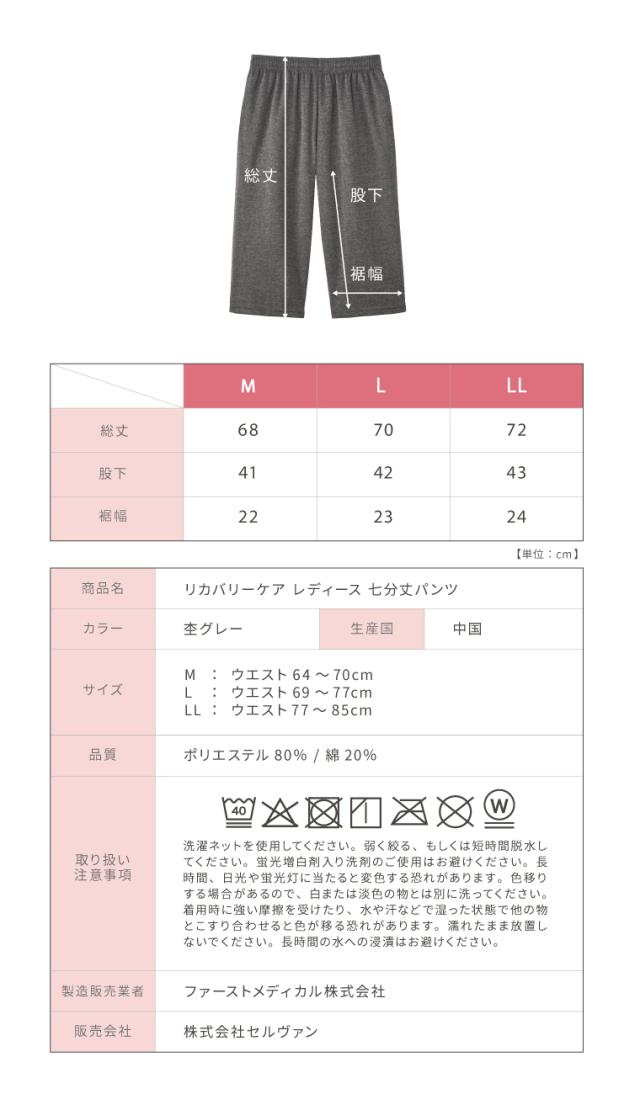 | 商品名 | リカバリーケア レディース7分丈パンツ |