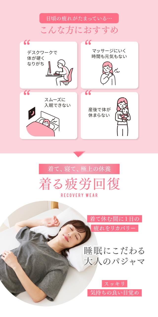 日々の体の疲労を軽減緩和する「一般医療機器」のルームウェアです。