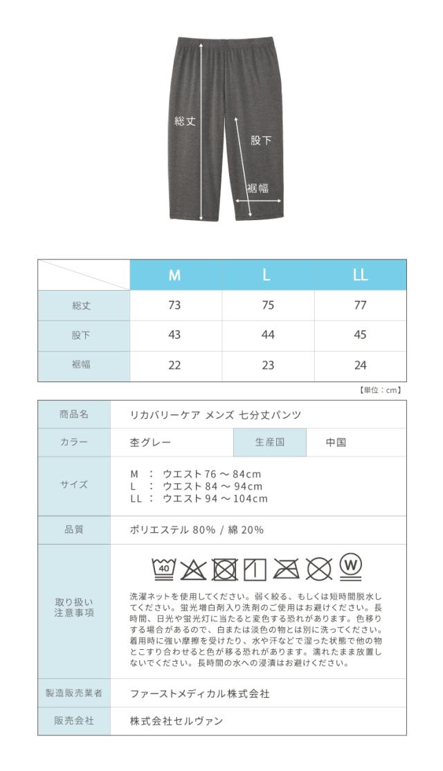 | 商品名 | リカバリーケア メンズ7分丈パンツ |