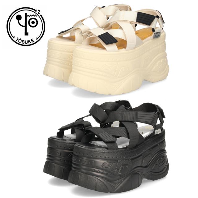 ヨースケ 厚底サンダル レディース ストラップ スポーツサンダル ブラック アイボリー 黒 白 ハイソール YOSUKE 2601178