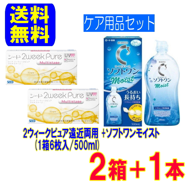 2ウィークピュア マルチステージ【2箱】+ソフトワンモイスト500ml【1本】 送料無料 2週間使い捨て 遠近両用 2ウィーク コンタクト 2week シード★