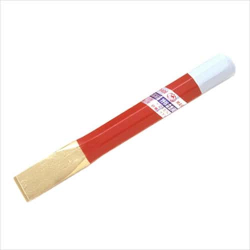 先端部(金色)に特殊合金工具鋼を摩擦圧接してありますので非常に優れた耐久性と強度を持っています。刃先が摩耗すれば普通砥石で再研磨ができ、また再鍛造も可能です。薄鉄板の切断にも使用出来ます。