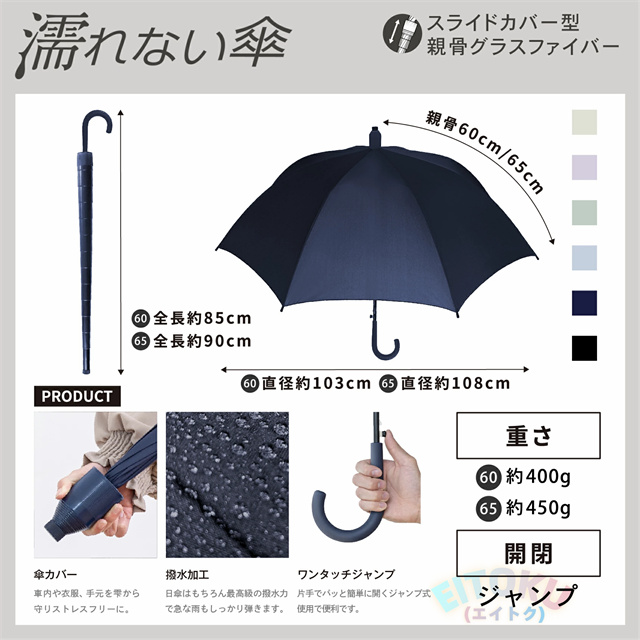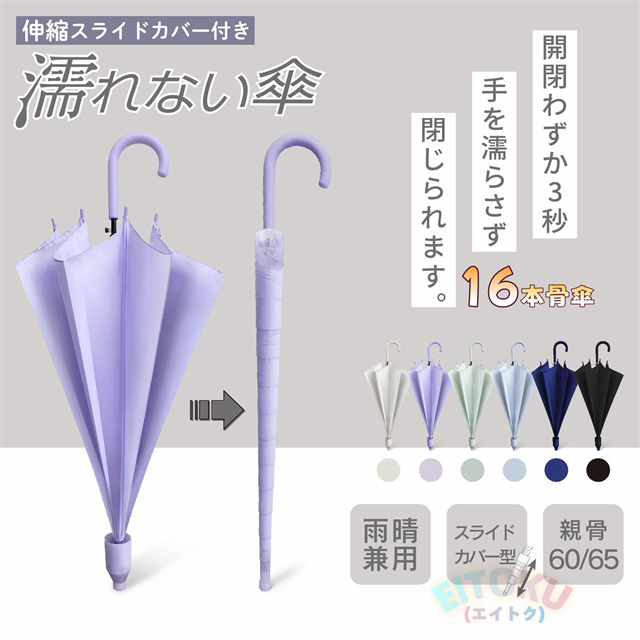 濡れない 傘 日傘 ぬれないんブレラ 傘ケース 傘カバー スライドカバー 付き 雨傘 長傘 便利 機能 車 電車 ぬれない カバー ギフト