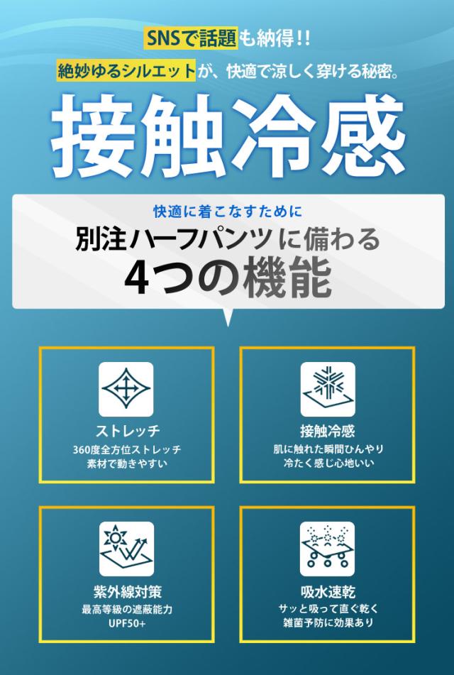 接触冷感機能のメンズハーフパンツが選べる2種類の股下で新登場!
