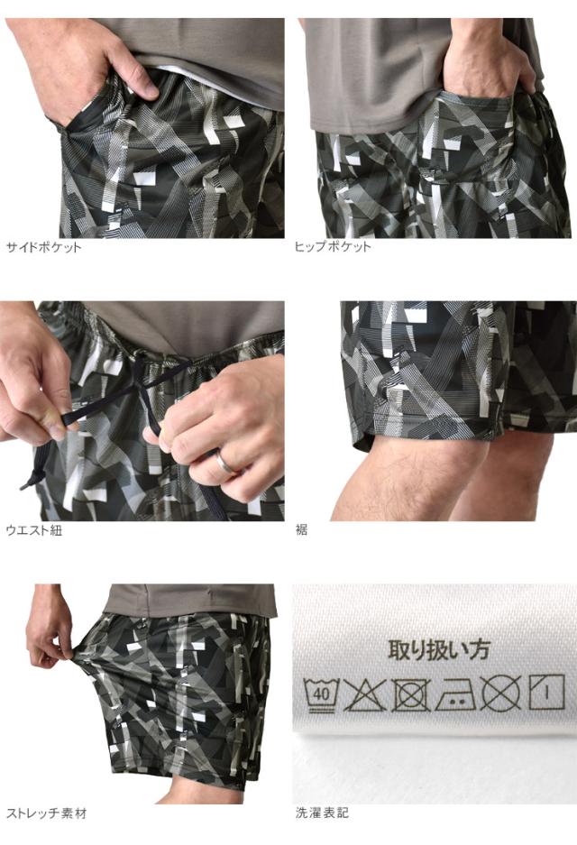 旧カラー ハーフパンツ メンズ ショートパンツ 接触冷感 吸汗速乾 ドライ ストレッチ UV対策 総柄【A5N】【送料無料】【メール便2】【メンズ】【mens】 父の日 ギフト 冬新作