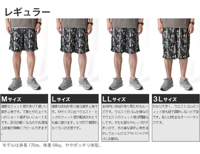 ![]() | Mサイズを着用しました。ウエストまわりは丁度いいフィット感で窮屈な感じはありませんでした。ヒップや太ももには余裕がありリラックスできる穿き心地です。軽い穿き心地なので部屋着にもランニングにも使えるハーフパンツです。 |