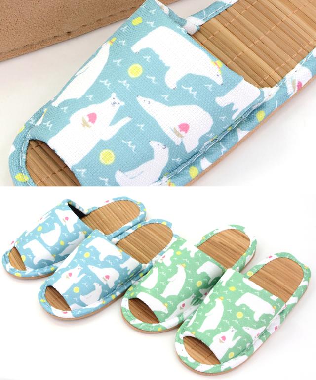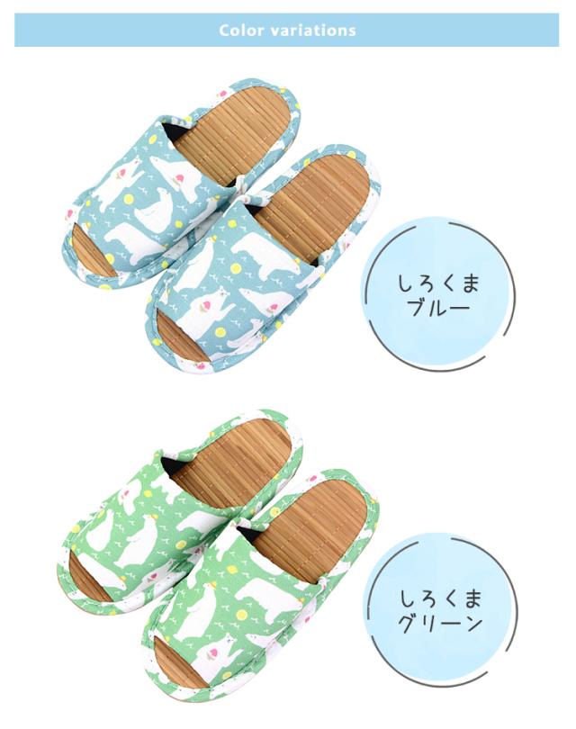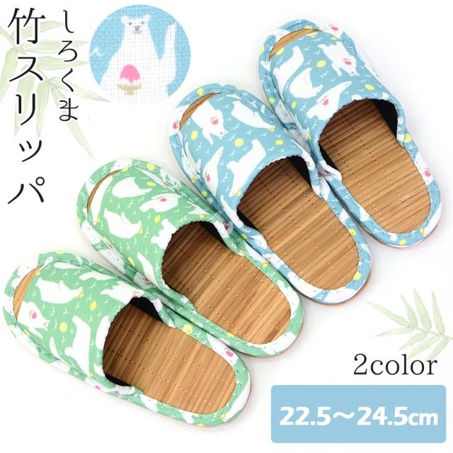 スリッパ 竹スリッパ しろくまリゾート 足底すべり止め付き 白クマ シロクマ レディース メンズ 外縫い 竹ヒゴ 天然 茶竹 竹中 健康 涼しい 蒸れない 夏用 春夏 秋冬 前開き 部屋履き 室内履き ルームシューズ 軽量 軽い 大人 かわいい 竹底スリッパ