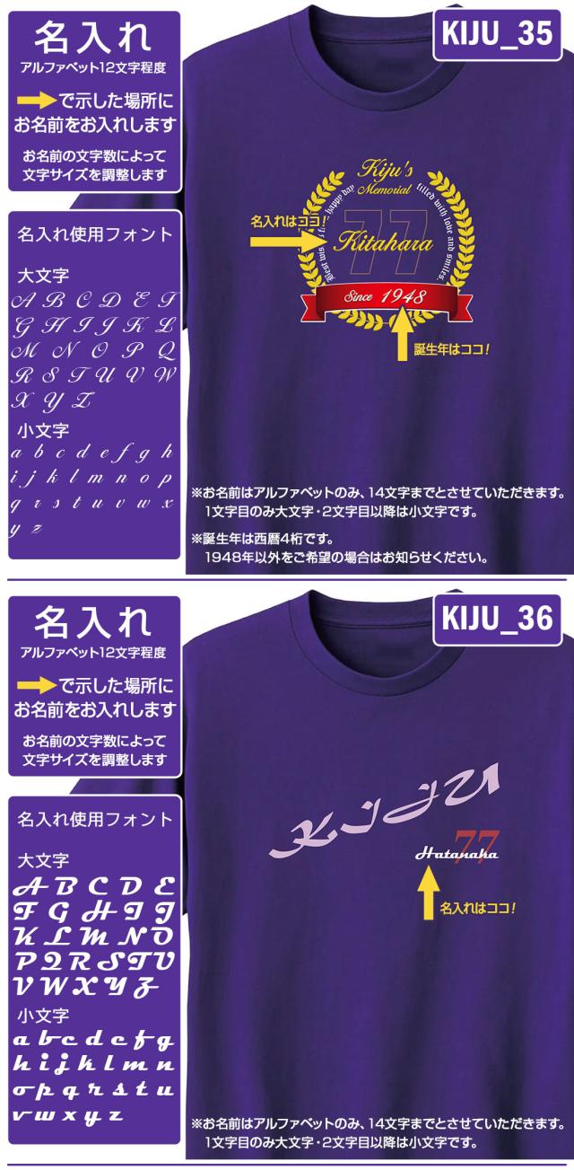 喜寿Tシャツ KIJUシリーズ 名入れ 喜寿祝い 喜寿 Tシャツ tシャツ おもしろい プリント 77歳 お祝い プレゼント ラッピング 紫 パープル おしゃれ サプライズ メンズ レディース 男性 女性 父 母 上司 メール便 送料無料