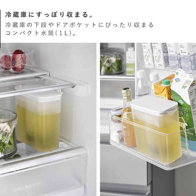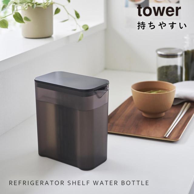 棚に入れられる冷水筒 タワー 1L 山崎実業 tower 冷水筒 1リットル 冷蔵庫 麦茶ポット 洗いやすい おしゃれ モノトーン ホワイト ブラック 1690 1691