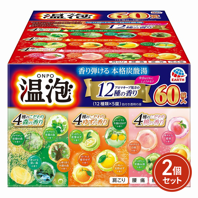 温泡 森・ゆず・桃 詰め合わせ 60錠(12種類×5錠)×2個セット 医薬部外品 アース製薬 入浴剤