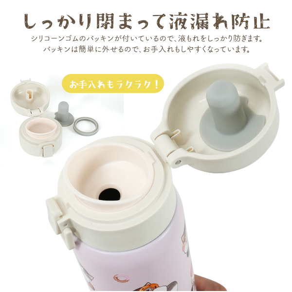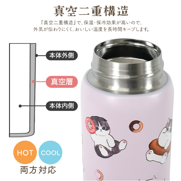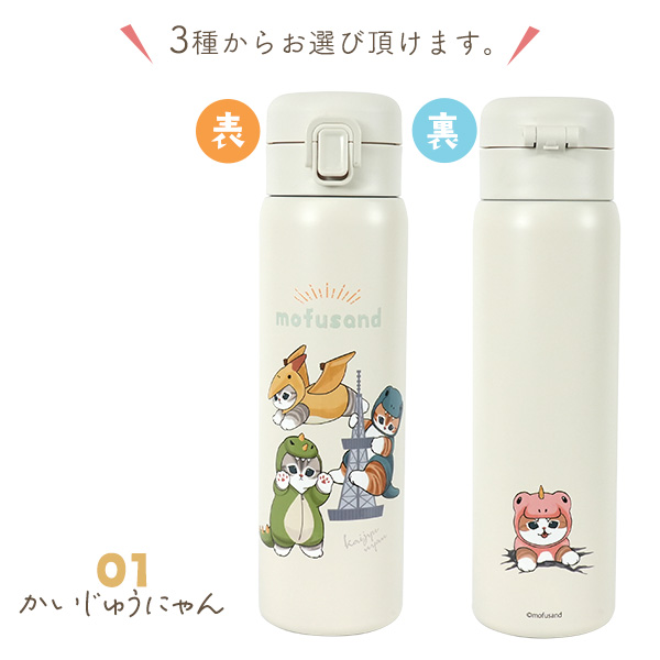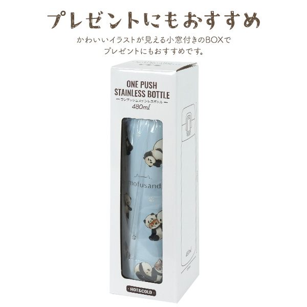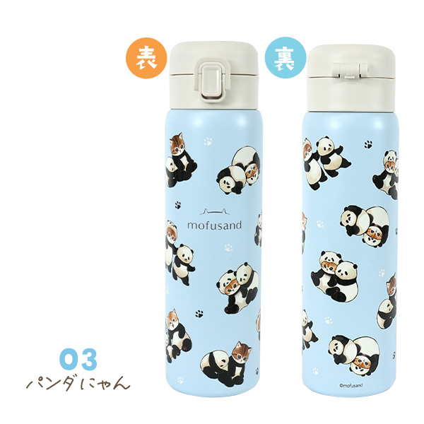 SNSで大人気!可愛いもふもふな猫のイラスト もふさんど ワンプッシュステンレスボトル 480ml