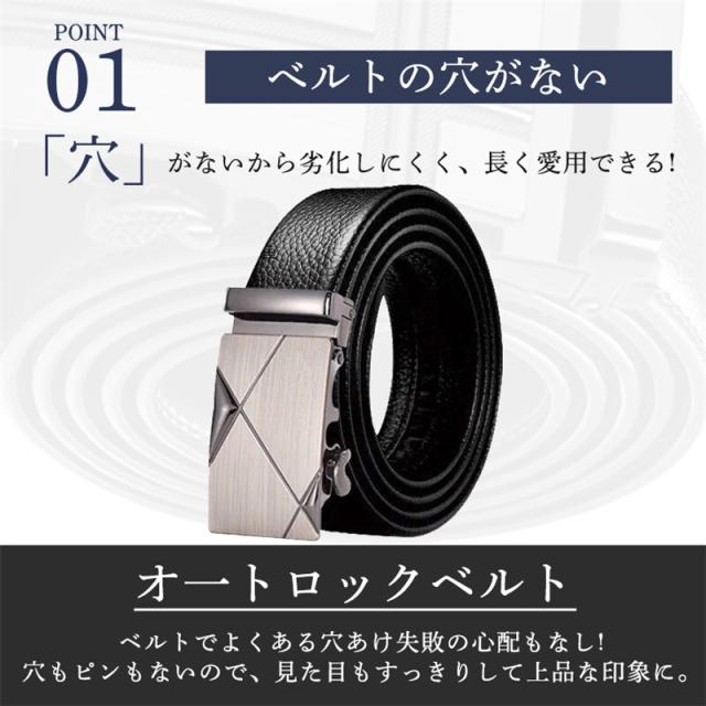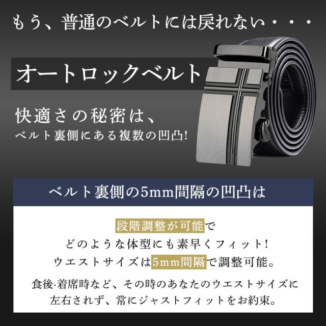 メーカー希望小売価格: 3,280円ベルト メンズ 穴なし 紳士 オートロック ビジネス 無段階 革 レザー カジュアル フォーマルスーツ ゴルフ 長め 自動 社会人