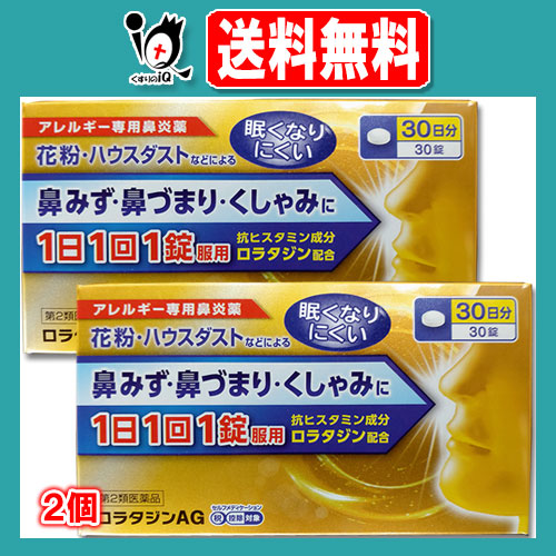 【第2類医薬品】★ロラタジンAG 30錠(30日分)×2個セット【日新薬品工業】アレルギー専用鼻炎薬 花粉・ハウスダストなどによる鼻みず・鼻づまり・くしゃみに ロラタジン 10mg配合 クラリチンと同成分配合