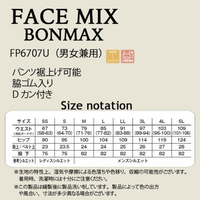 パンツ 裾上げらくらくパンツ ノータックパンツ 男女兼用 ボンマックス FACEMIX fp6707u 人気商品 サービス 制服 飲食店 ユニホーム ビジネス ブラック ネイビー ベージュ