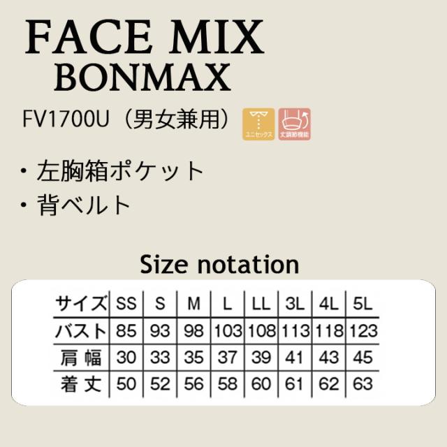 ベスト 男女兼用 ユニセックス ボンマックス FACEMIX fv1700u サービス リゾート ホテル 受付 オールスタッフ 制服 飲食店 ユニホーム ホワイト ワイン ネイビー ブラック ブラウン
