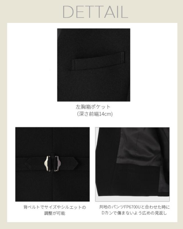 | 説明 特徴 | 魅力的な価格と癖のないシルエットで人気の男女兼用フォーマルベストです。 背中ベルトはウエストサイズやシルエットの調節が可能。 |