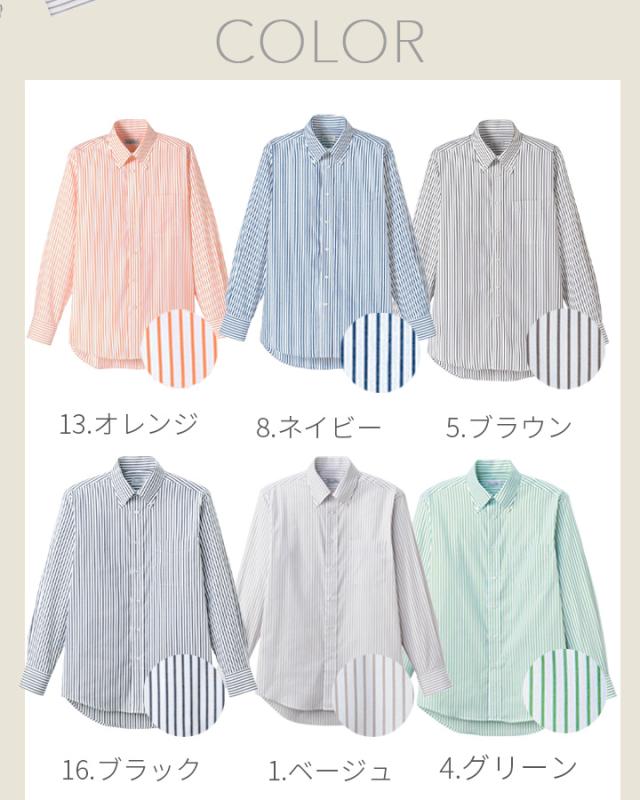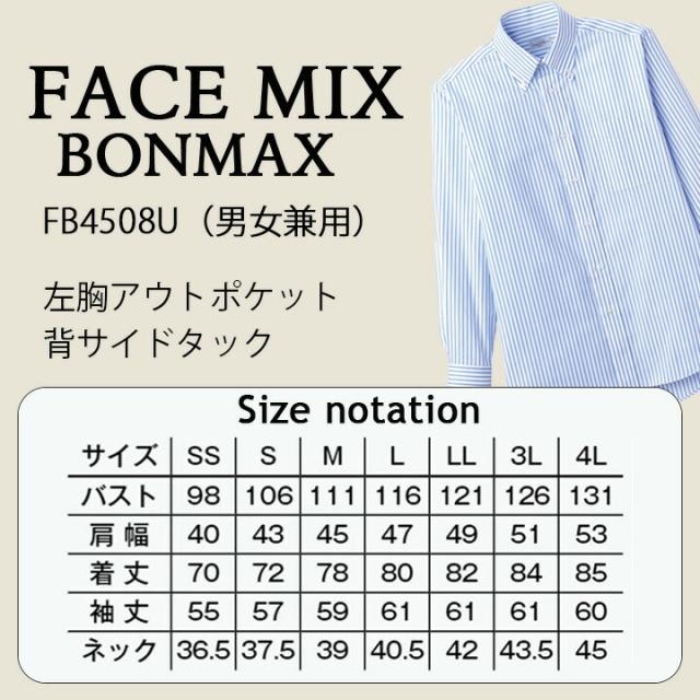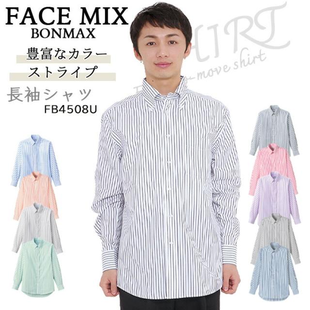 ストライプシャツ 長袖 男女兼用 ボンマックス FACEMIX fb4508u サービス 制服 飲食店 ユニホーム ビジネス おしゃれ カラフル