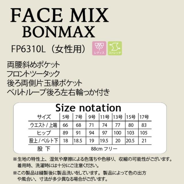 レディースパンツ ストレッチ スタンダード チノ ボンマックス FACEMIX fp6310l サービス 制服 飲食店 ユニホーム ビジネス ブラック ネイビー ベージュ