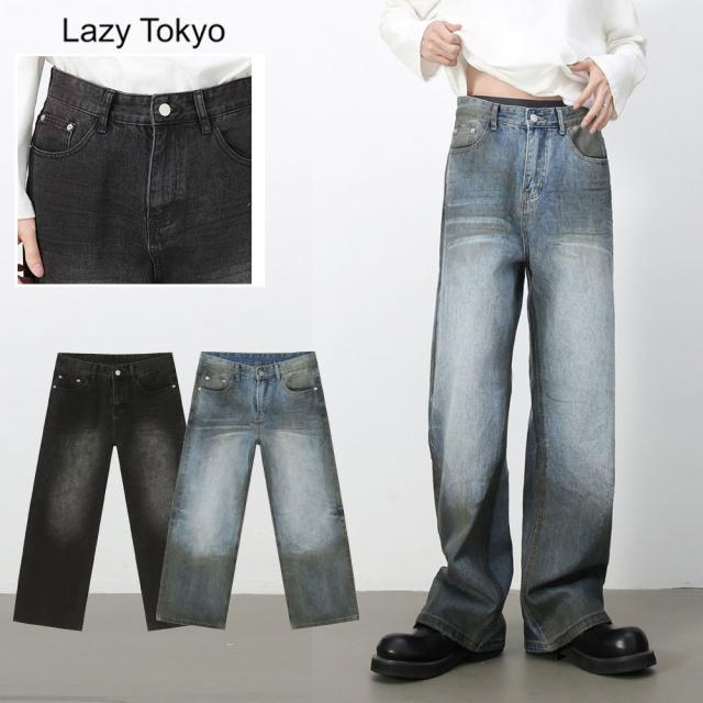 デニムパンツ メンズ おしゃれ ジーパン Gパン ストレートデニム ブラック ブルー ヨゴシ加工 サンドウォッシュ ブラスト 髭加工 ジーンズ ワイドデニム デニム パンツ ワイドパンツ 脚長効果 色落ち ヴィンテージ 古着風 ビンテージ 韓国 個性的 Lazy Tokyo オールシーズン 20代 30代 40代 ユニセックス 男性 男 服 夏 夏服 ファッション 東京 プレゼント 誕生日 記念日 贈り物 ギフト配送について