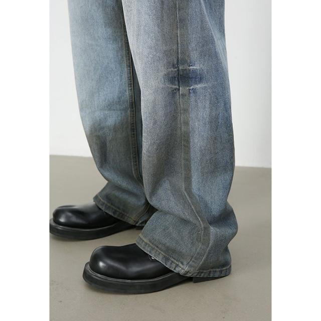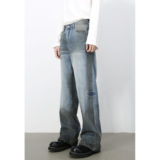 ■スプレーヨゴシ加工が施されたヴィンテージライクなデニムパンツ