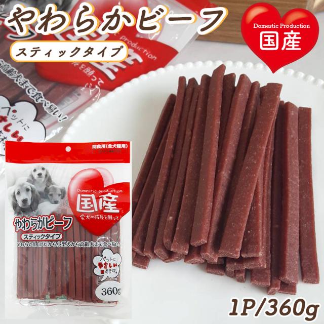ジャーキー 犬 おやつ やわらかビーフ スティックタイプ 1P 360g 送料無料 全犬種用 犬用おやつ ドッグフード ペットフード 乾燥肉 国産素材使用 国産 【ITFC】 MLD-mp0019