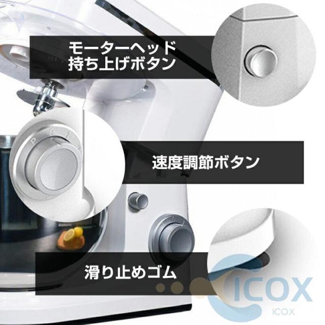 1、一台三役、三種類の攪拌機能:「練る」「混ぜる」「泡立てる」。家庭ではもちろん、業務用としても導入可能。ケーキ屋、パン屋、飲食店、食堂、実験室での攪拌機器、工業利用など。