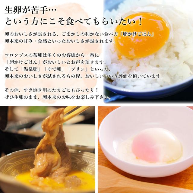 コロンブスの茶卵は多くのお客様から一番に「卵かけごはん」「温泉卵」そして、「すき焼き用の卵」がおいしいと絶賛いただいております。
