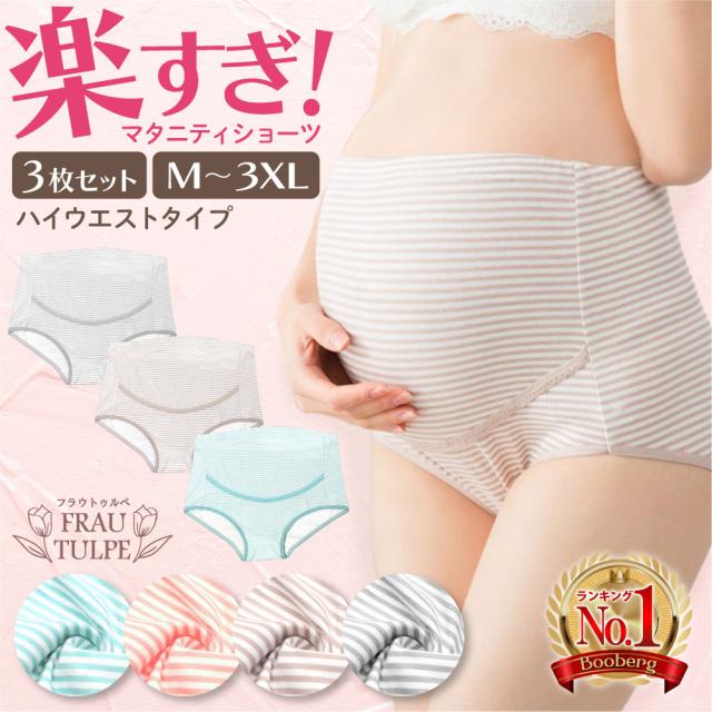 マタニティショーツ ハイウエスト 3枚 セット マタニティ パンツ 肌に優しい ボーダー 妊婦 妊娠 ハイライズ 下着 大きい 大きめ ショーツ まとめ買い お腹 レース ハイウエストショーツ 冷え対策 3l 下着 出産 綿 大きいサイズ 産前 産後 国内検査済