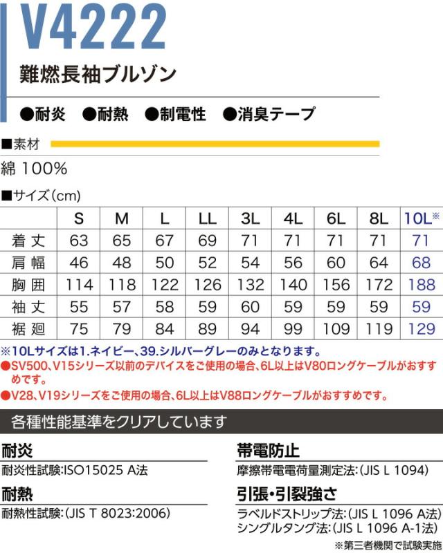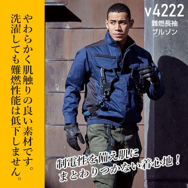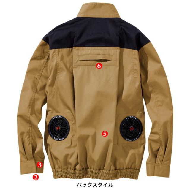 【即日発送】HOOH 快適ウェア 難燃シリーズ 長袖ブルゾン V4222 バックファン 空調ウェア 難燃 耐炎 耐熱 防炎性 制電性 コットン ジャケット フルハーネス対応 ファン付きウェア対応 EFウェア 熱中症対策 春夏 作業服 作業着 溶接 キャンプ 村上被服