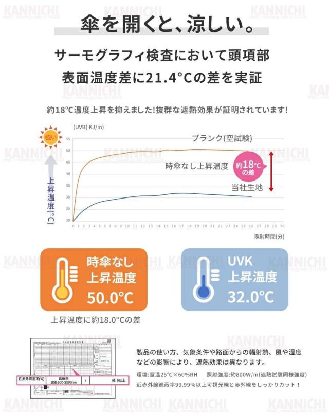今までの傘は軽量化をすれば強度が下がり、丈夫にすると重くなっていましたが、こちらの日傘シリーズは強度や耐久性に優れた素材が採用され、繊細な職人技によって丁寧に仕上げられているため、軽さを実現しつつ、強度や耐久性にも配慮して設計しており、超強風対応に耐えられる丈夫なフレーム構造になっています。万が一強い風で裏返っても、折りたためば元に戻れます。また、素材選びから製造まで、徹底した品質管理の下で作り上げられてるため、日焼けによる劣化の心配もなく、耐久性が通常傘の約1.7倍です。