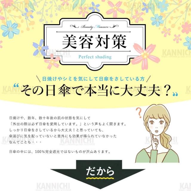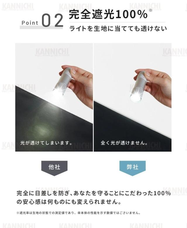 遮光率100%、紫外線遮蔽率99.9%以上の効果で夏の強い紫外線を遮ります。
