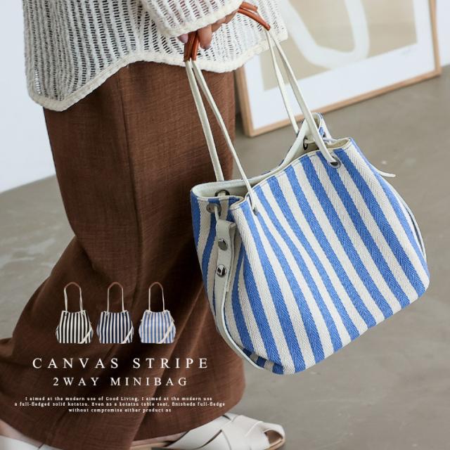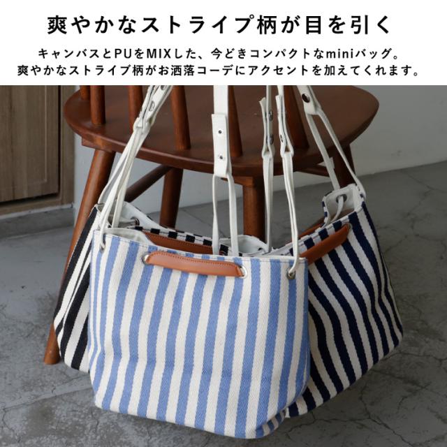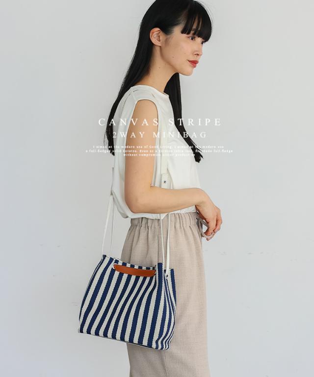 ストライプ柄キャンバス2wayミニバッグ