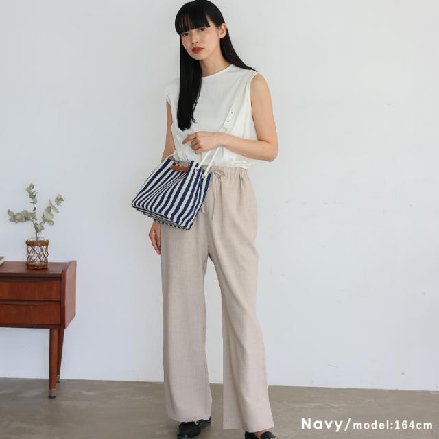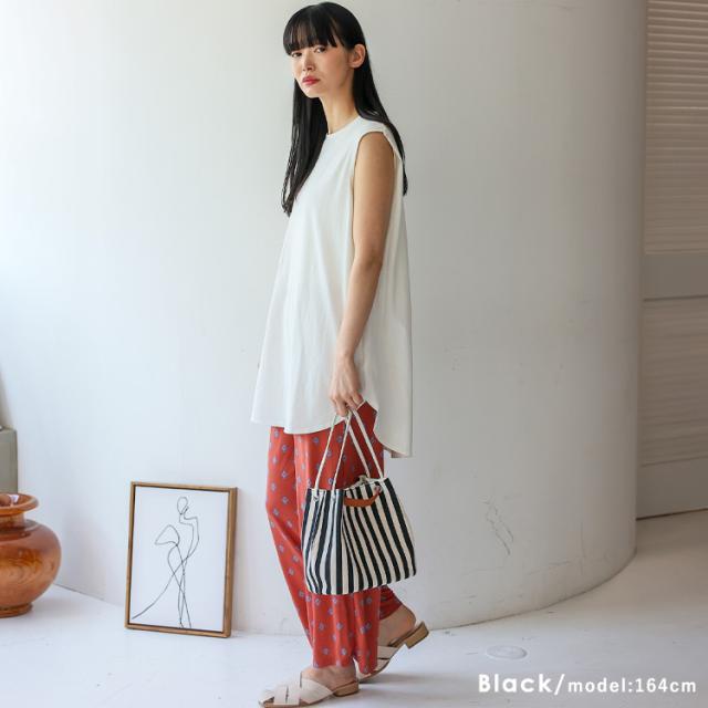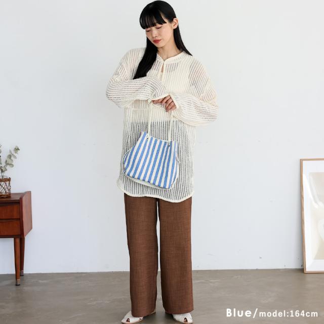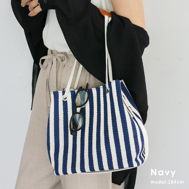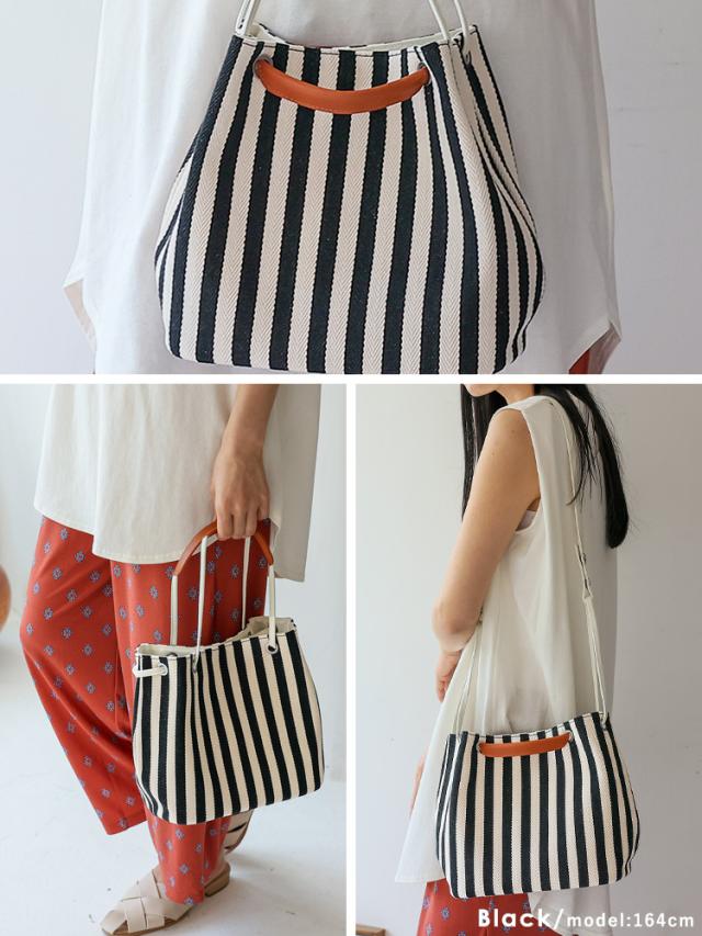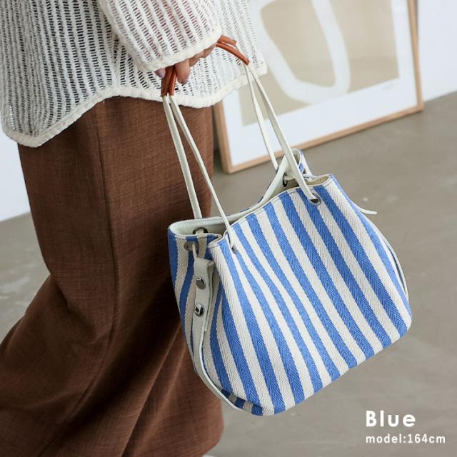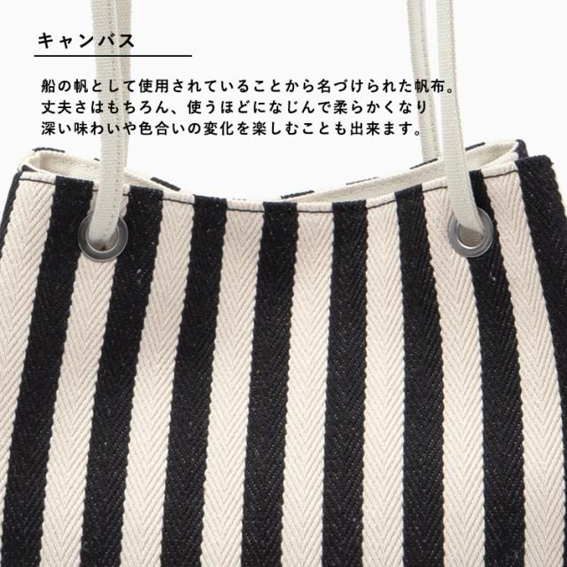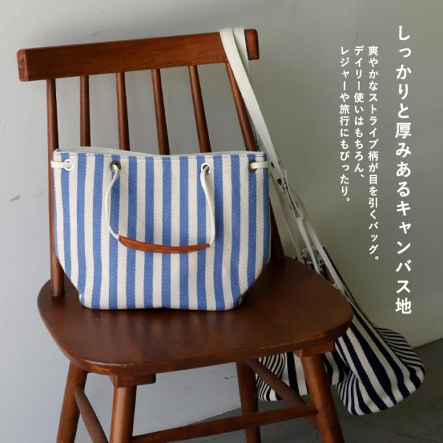 爽やかなストライプ柄が目を引くキャンバスバッグ。