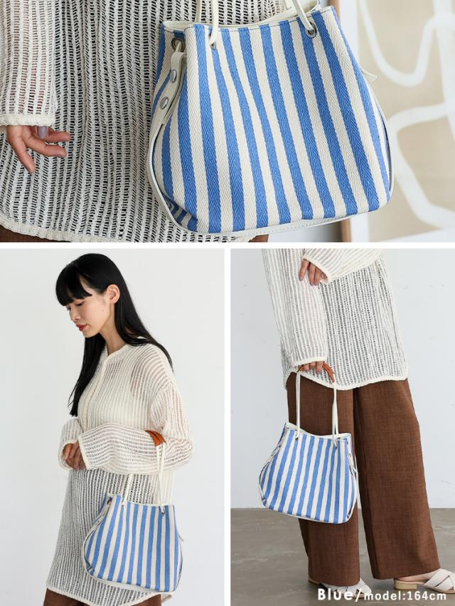 キャンバスバッグ トート ストライプ柄 かわいい ナチュラル a5 大きめ 大容量 2way ショルダーバッグ サマーバッグ 斜めがけ 軽い 帆布 肩掛け 斜め掛け 上品 お祭り 浴衣 花火大会【メール便】 nsb-30300z 【aroco/アロコ】 春夏 夏バッグ