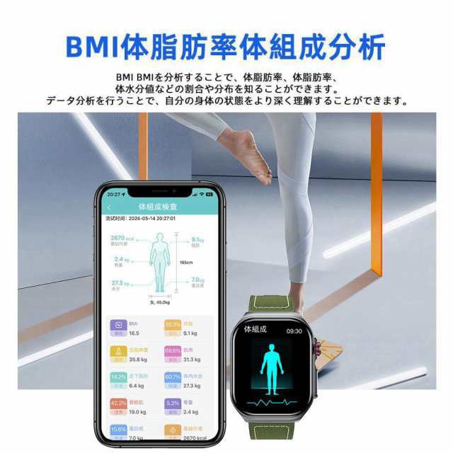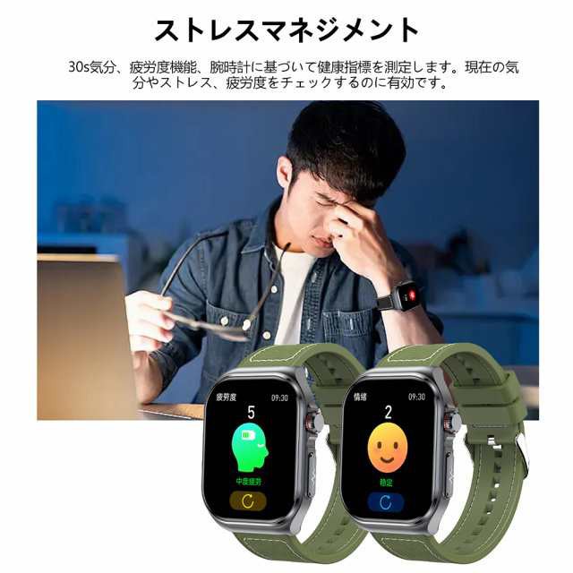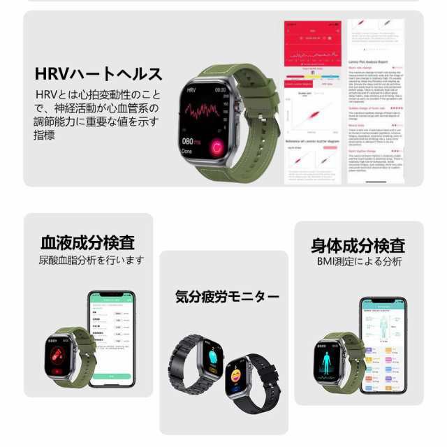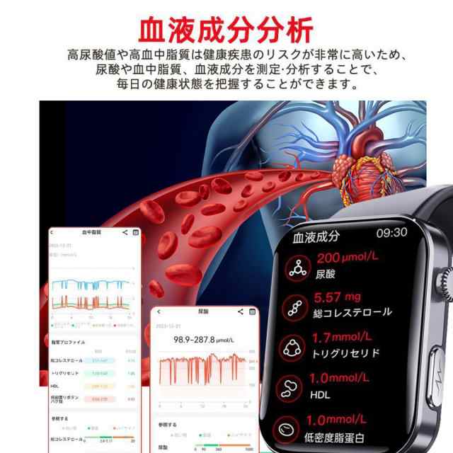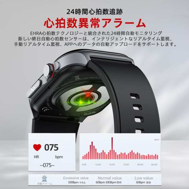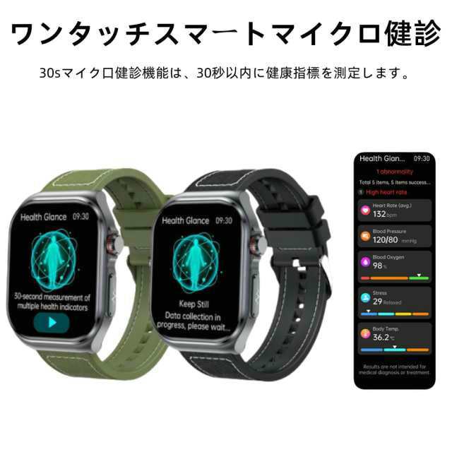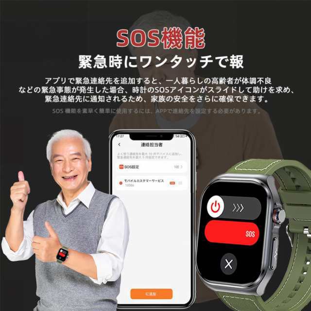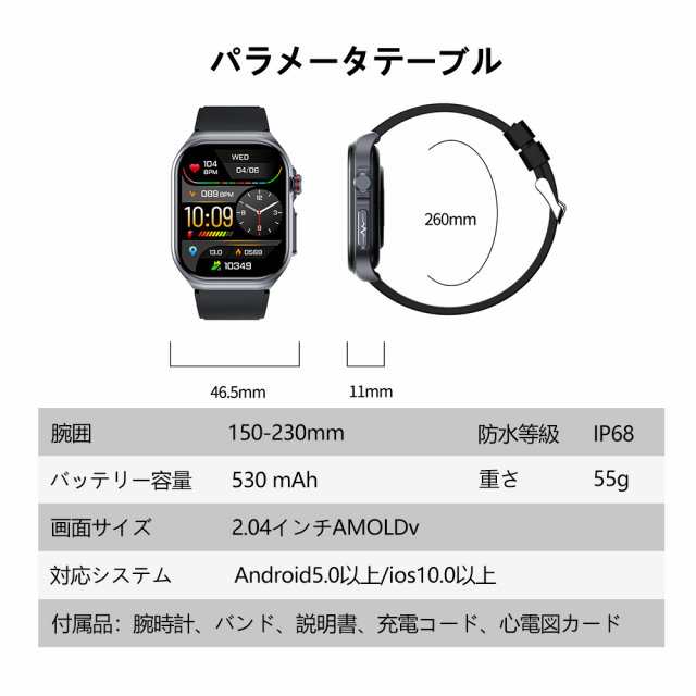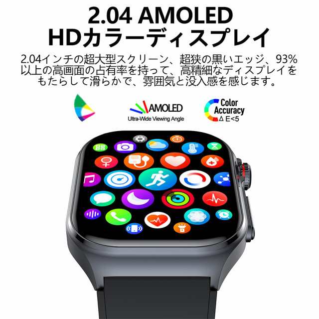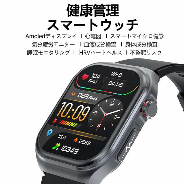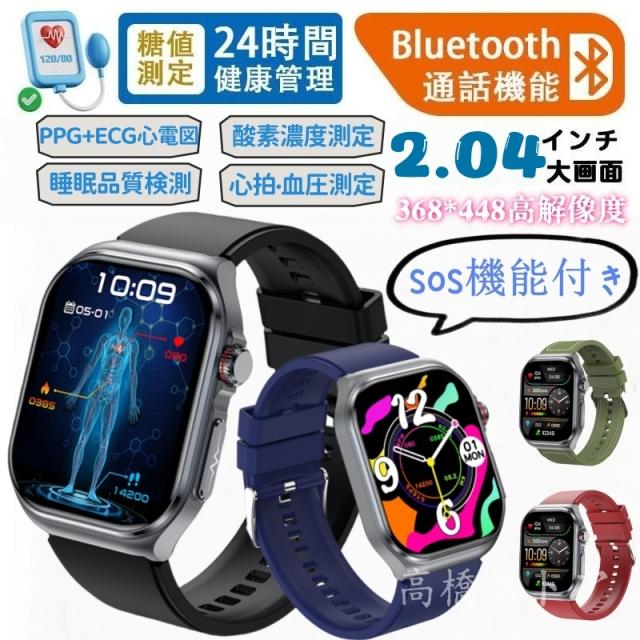 スマートウォッチ 日本製センサー SOS機能 高精度心拍数 体温 心電図 血中酸素 血圧測定 血糖値測定 睡眠検測 通話機能 着信通知 Bluetooth 日本語説明書付 2.04インチ大画面 高齢者 メンズ レディース ギフト