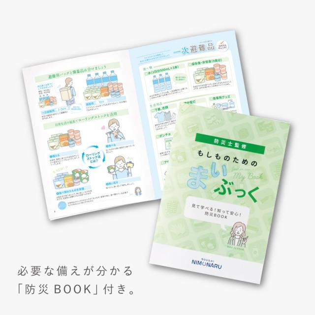 防災士さとうりか氏監修。防災について学べ、必要な備えが分かる「防災BOOK」付き。