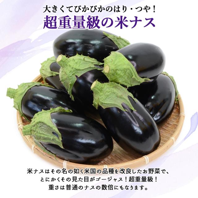米ナスはその名の如く米国の品種を改良したお野菜で、とにかくその見た目がゴージャス!超重量級!普通のナスの数倍なんです。