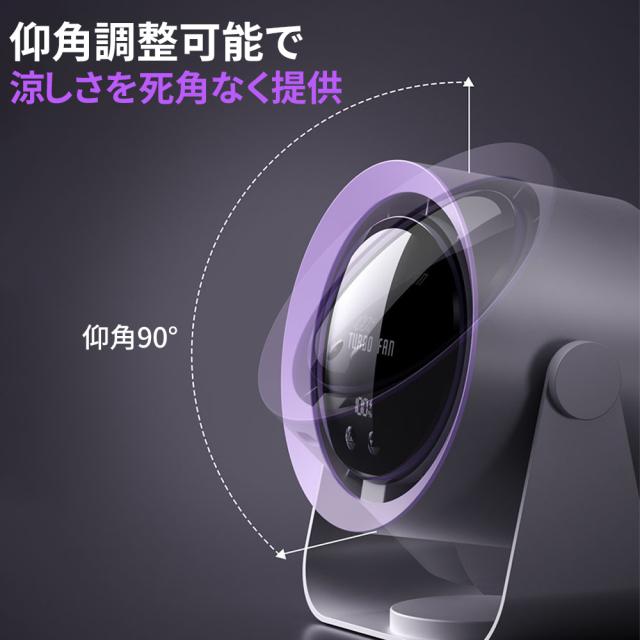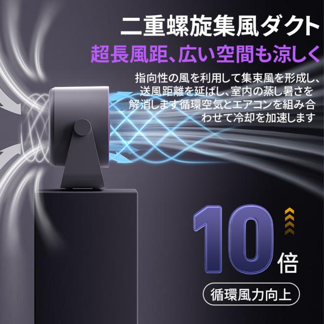パワフルな風量と静音設計を兼ね備えた、小型ながら高性能なデスクファンです。4000mAhの大容量バッテリーを搭載し、コードレスで使用できるため、オフィスや自宅はもちろん、アウトドアやキャンプなどでも大活躍。