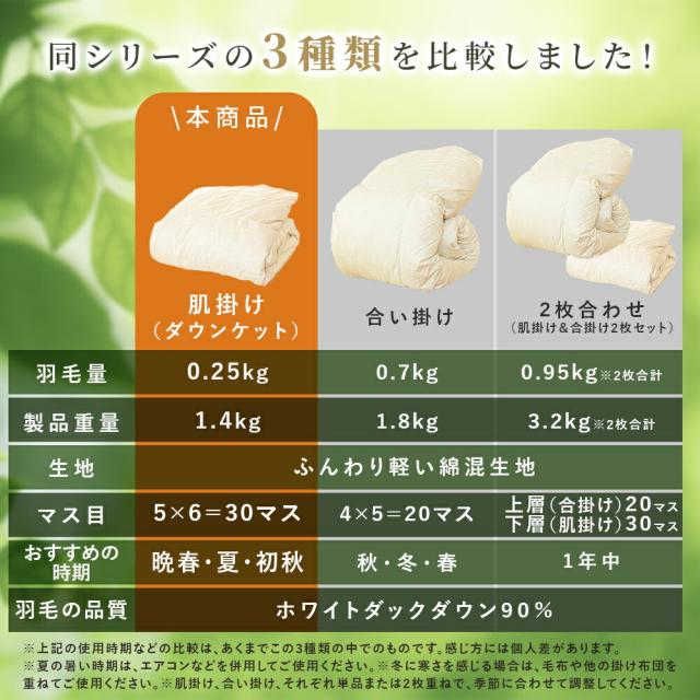当社限定 京都金桝 ダウンケット 羽毛 肌掛け 布団 シングル 日本製 ホワイトダウン90% 0.25kg 綿100% 夏 寝冷え対策 肌掛け