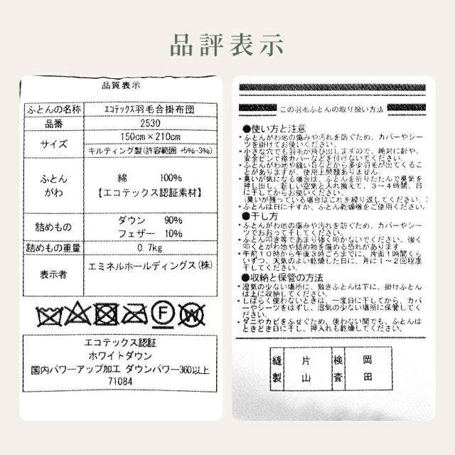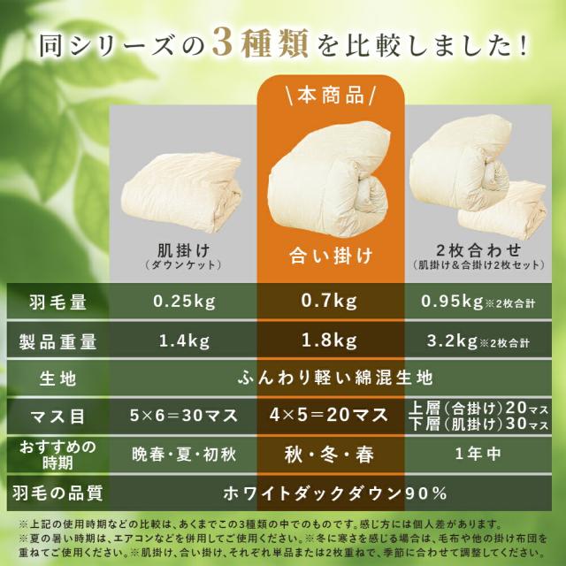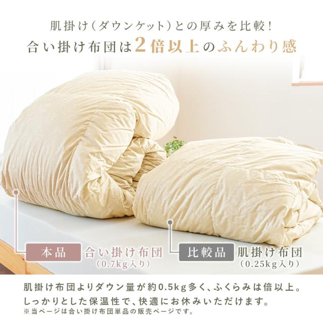 [keyword|当社限定 羽毛合掛け布団 シングル 国産 ホワイトダウン90% 0.7kg 綿100% コットン 春用 秋用 冬用 羽毛合掛けふとん 羽毛布団 羽毛ふとん 日本製 150×210cm 京都金桝 ベージュ グレー エコ サステナブル エコテックス]