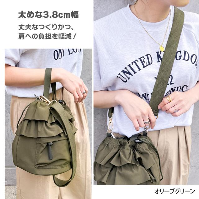 太めな3.8cm幅で丈夫なつくりかつ、肩への負担を軽減!